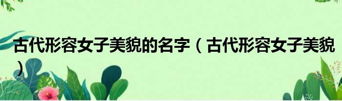 古代形容女子美貌的名字(古代形容女子美貌)