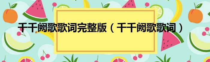 大家好,小活来为大家解答以上的问题。千千阙歌歌词完整版,千千阙歌歌词这个很多人还不知道,现在让我们一起来看看吧!