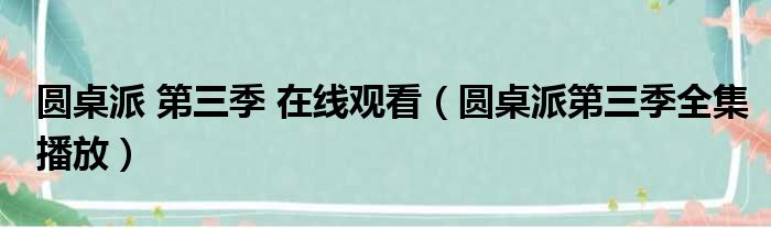 圆桌派 第三季 在线观看(圆桌派第三季全集播放)