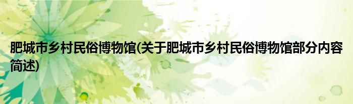 肥城市乡村民俗博物馆(关于肥城市乡村民俗博物馆部分内容简述)