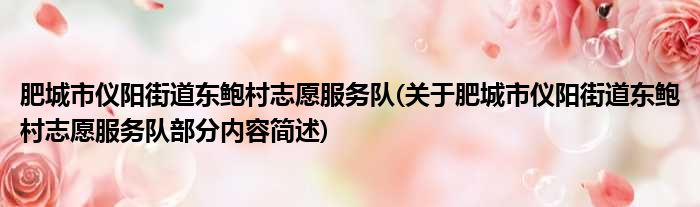 肥城市仪阳街道东鲍村志愿服务队(关于肥城市仪阳街道东鲍村志愿服务队部分内容简述)