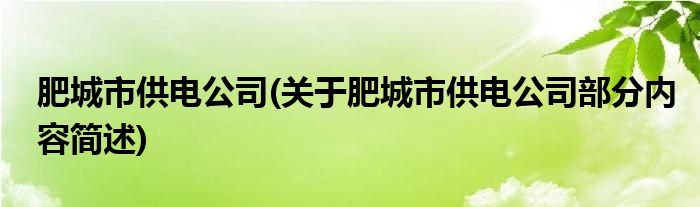 肥城市供电公司(关于肥城市供电公司部分内容简述)