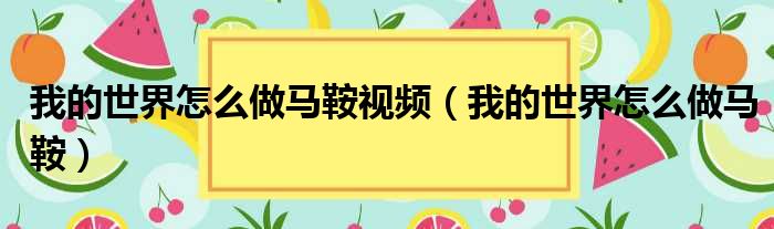 我的世界怎么做马鞍视频(我的世界怎么做马鞍)