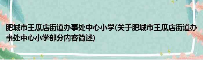 肥城市王瓜店街道办事处中心小学(关于肥城市王瓜店街道办事处中心小学部分内容简述)