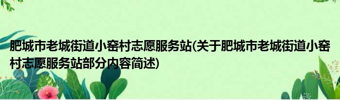 肥城市老城街道小窑村志愿服务站(关于肥城市老城街道小窑村志愿服务站部分内容简述)