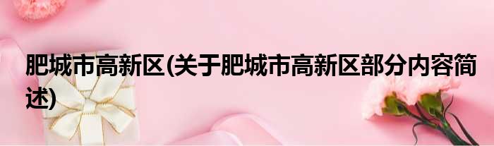 肥城市高新区(关于肥城市高新区部分内容简述)