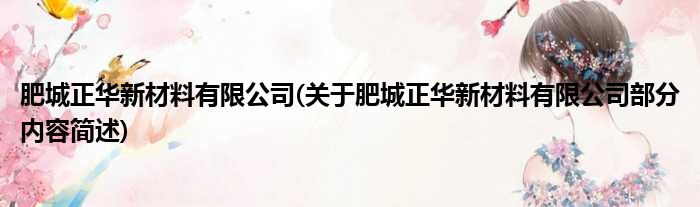 肥城正华新材料有限公司(关于肥城正华新材料有限公司部分内容简述)