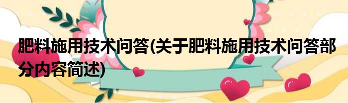 肥料施用技术问答(关于肥料施用技术问答部分内容简述)