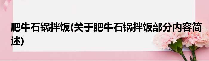 肥牛石锅拌饭(关于肥牛石锅拌饭部分内容简述)