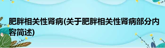 肥胖相关性肾病(关于肥胖相关性肾病部分内容简述)