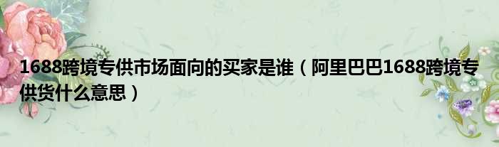 导读 大家好,小活来为大家解答以上的问题。1688跨境专供市场面向的买家是谁,阿里巴巴1688跨境专供货什么意思这个很多人还不知道,现在让我们一起