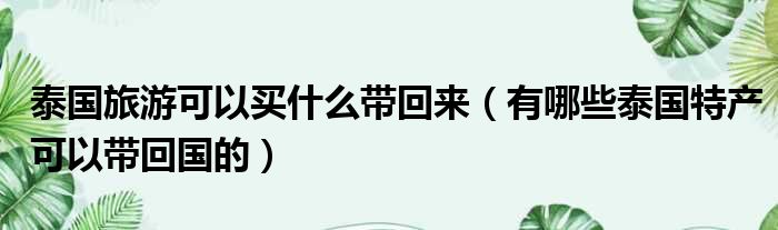 导读 大家好,小活来为大家解答以上的问题。泰国旅游可以买什么带回来,有哪些泰国特产可以带回国的这个很多人还不知道,现在让我们一起来看看吧!