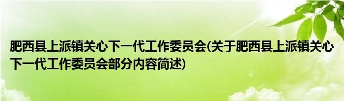 肥西县上派镇关心下一代工作委员会(关于肥西县上派镇关心下一代工作委员会部分内容简述)