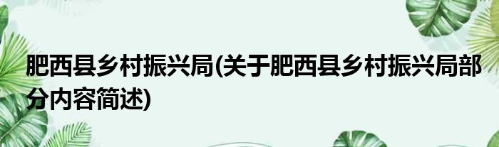 肥西县乡村振兴局(关于肥西县乡村振兴局部分内容简述)