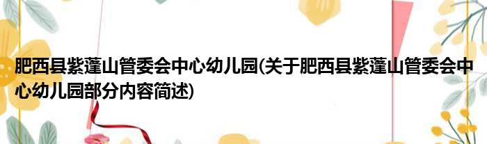 肥西县紫蓬山管委会中心幼儿园(关于肥西县紫蓬山管委会中心幼儿园部分内容简述)