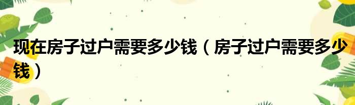 现在房子过户需要多少钱(房子过户需要多少钱)