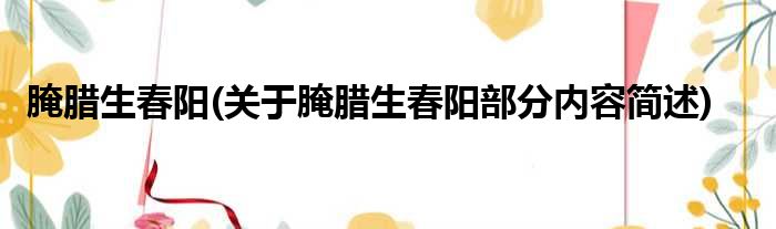 腌腊生春阳(关于腌腊生春阳部分内容简述)