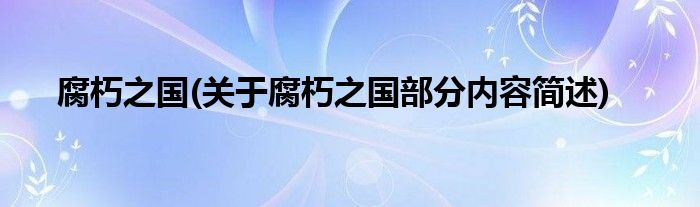 导读 大家好,今天小方来说说一篇关于腐朽之国,关于腐朽之国部分内容简述的文章,那么现在就为大家来简单介绍下,希望对各位小伙伴们有所帮助。
