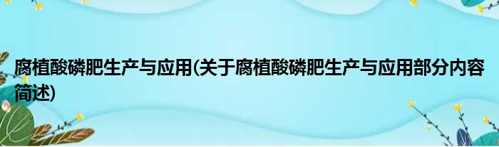 腐植酸磷肥生产与应用(关于腐植酸磷肥生产与应用部分内容简述)