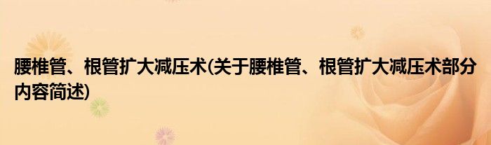 腰椎管、根管扩大减压术(关于腰椎管、根管扩大减压术部分内容简述)