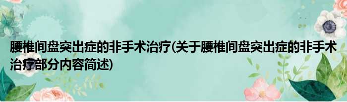 腰椎间盘突出症的非手术治疗(关于腰椎间盘突出症的非手术治疗部分内容简述)