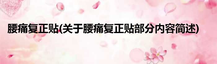 腰痛复正贴(关于腰痛复正贴部分内容简述)
