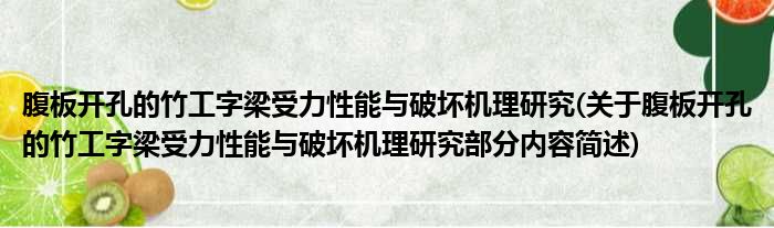 腹板开孔的竹工字梁受力性能与破坏机理研究(关于腹板开孔的竹工字梁受力性能与破坏机理研究部分内容简述)