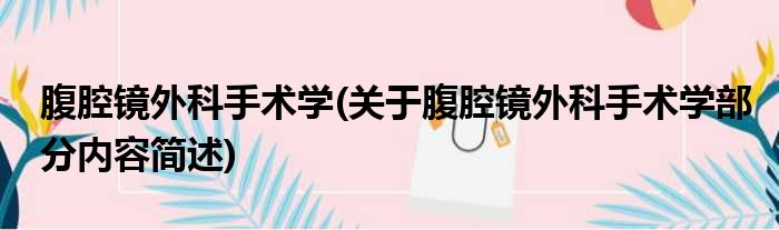 腹腔镜外科手术学(关于腹腔镜外科手术学部分内容简述)