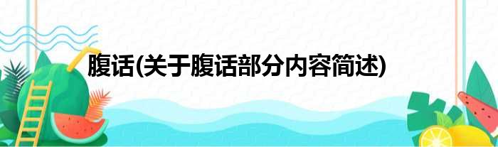 导读 大家好,今天小方来说说一篇关于腹话,关于腹话部分内容简述的文章,那么现在就为大家来简单介绍下,希望对各位小伙伴们有所帮助。