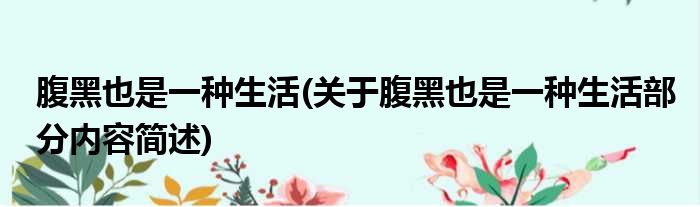 腹黑也是一种生活(关于腹黑也是一种生活部分内容简述)