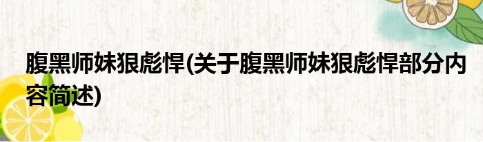 腹黑师妹狠彪悍(关于腹黑师妹狠彪悍部分内容简述)
