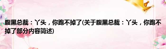 导读 大家好,今天小方来说说一篇关于腹黑总裁:丫头,你跑不掉了,关于腹黑总裁:丫头,你跑不掉了部分内容简述的文章,那么现在就为大家来简单