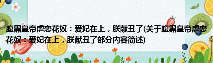 导读 大家好,今天小方来说说一篇关于腹黑皇帝虐恋花奴:爱妃在上,朕献丑了,关于腹黑皇帝虐恋花奴:爱妃在上,朕献丑了部分内容简述的文章,那