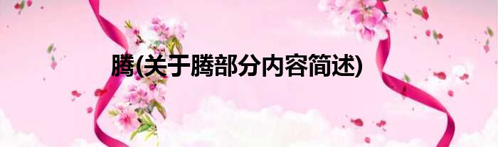 大家好,今天小方来说说一篇关于腾,关于腾部分内容简述的文章,那么现在就为大家来简单介绍下,希望对各位小伙伴们有所帮助。