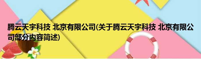 腾云天宇科技 北京有限公司(关于腾云天宇科技 北京有限公司部分内容简述)