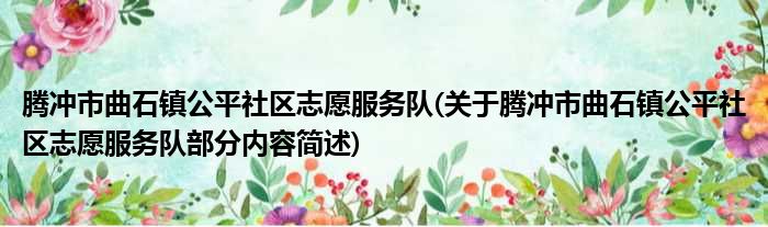 腾冲市曲石镇公平社区志愿服务队(关于腾冲市曲石镇公平社区志愿服务队部分内容简述)