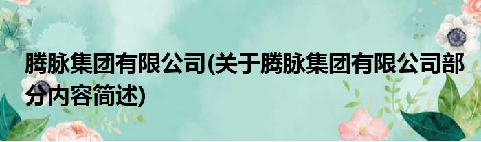 腾脉集团有限公司(关于腾脉集团有限公司部分内容简述)
