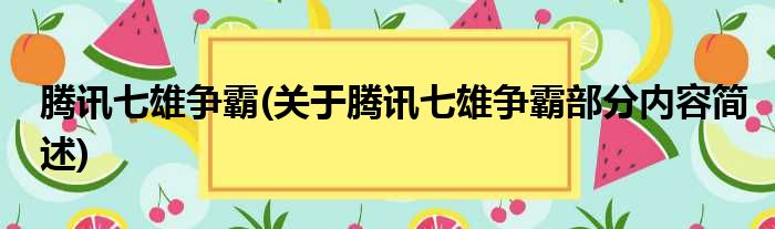 腾讯七雄争霸(关于腾讯七雄争霸部分内容简述)