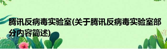 腾讯反病毒实验室(关于腾讯反病毒实验室部分内容简述)