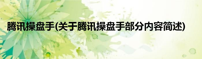 腾讯操盘手(关于腾讯操盘手部分内容简述)