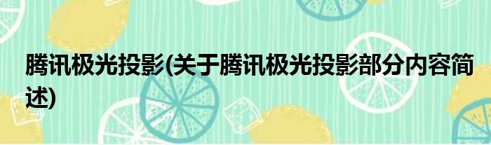 腾讯极光投影(关于腾讯极光投影部分内容简述)