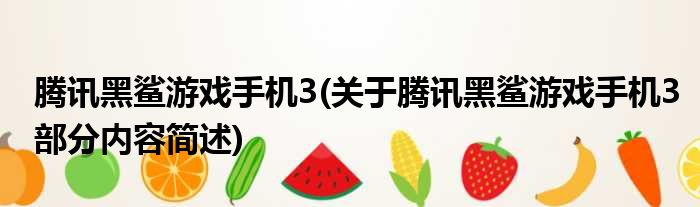 腾讯黑鲨游戏手机3(关于腾讯黑鲨游戏手机3部分内容简述)