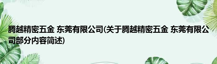 腾越精密五金 东莞有限公司(关于腾越精密五金 东莞有限公司部分内容简述)