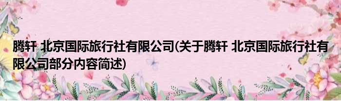 腾轩 北京国际旅行社有限公司(关于腾轩 北京国际旅行社有限公司部分内容简述)