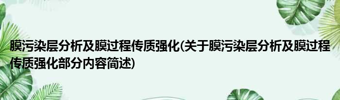膜污染层分析及膜过程传质强化(关于膜污染层分析及膜过程传质强化部分内容简述)