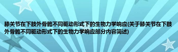 膝关节在下肢外骨骼不同驱动形式下的生物力学响应(关于膝关节在下肢外骨骼不同驱动形式下的生物力学响应部分内容简述)