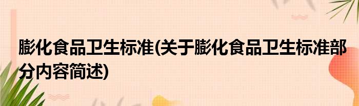 膨化食品卫生标准(关于膨化食品卫生标准部分内容简述)