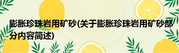 膨胀珍珠岩用矿砂(关于膨胀珍珠岩用矿砂部分内容简述)