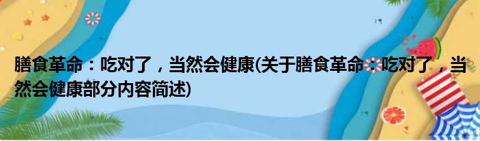 膳食革命:吃对了,当然会健康(关于膳食革命:吃对了,当然会健康部分内容简述)