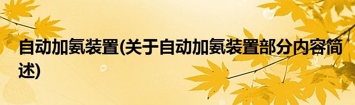 自动加氨装置(关于自动加氨装置部分内容简述)